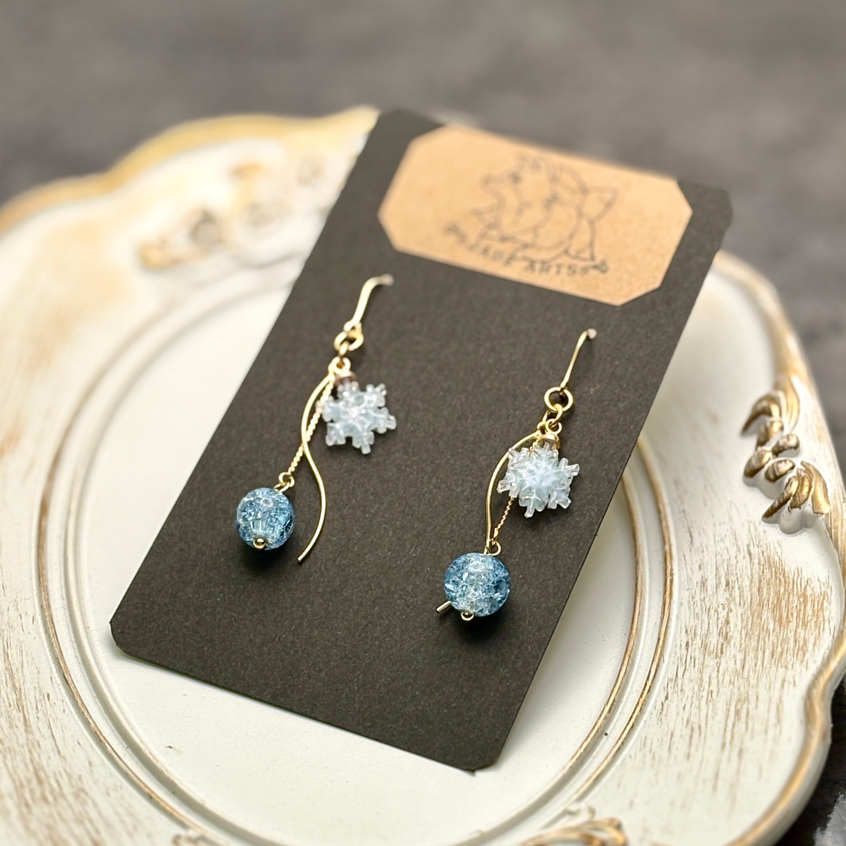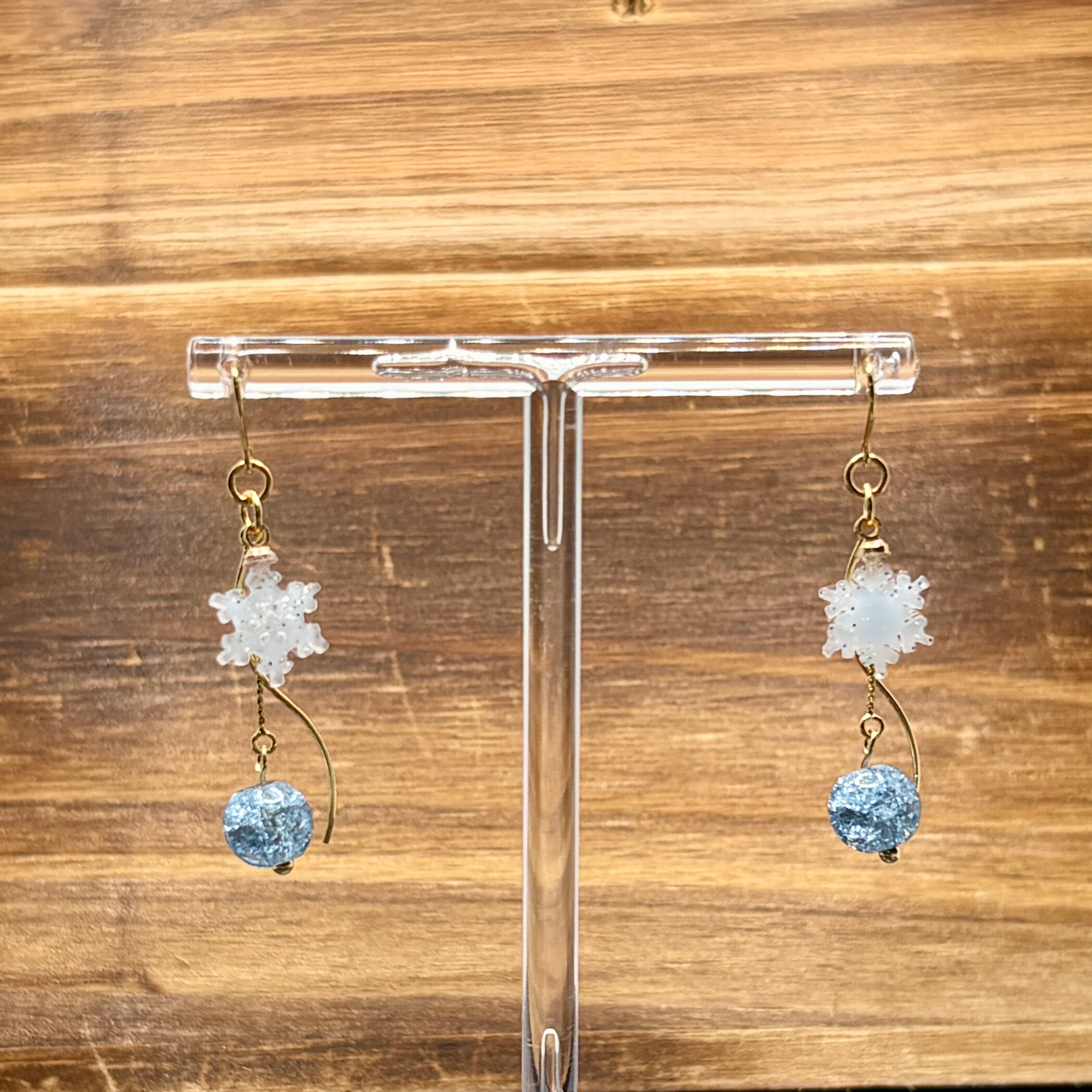 雪の結晶はこの世界でも溶けることはなく、華やかに耳元を彩ります。