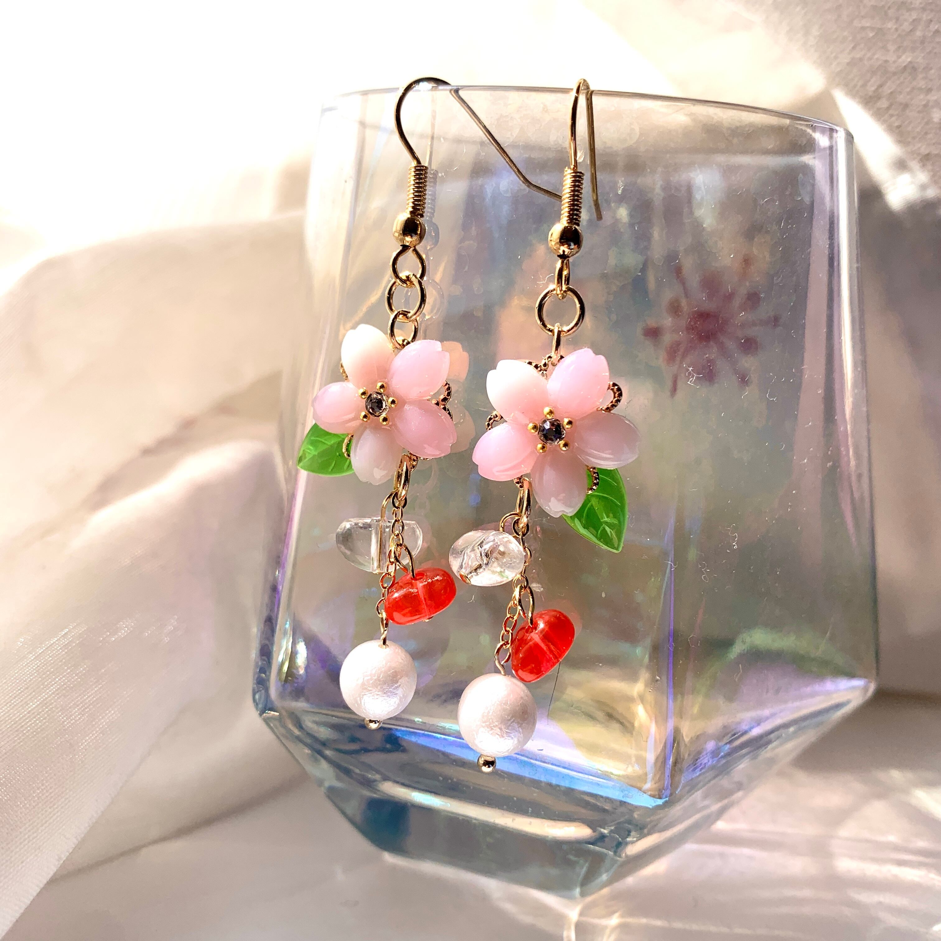 パステルカラーにクリスタルが映える、桜のアクセサリーです。